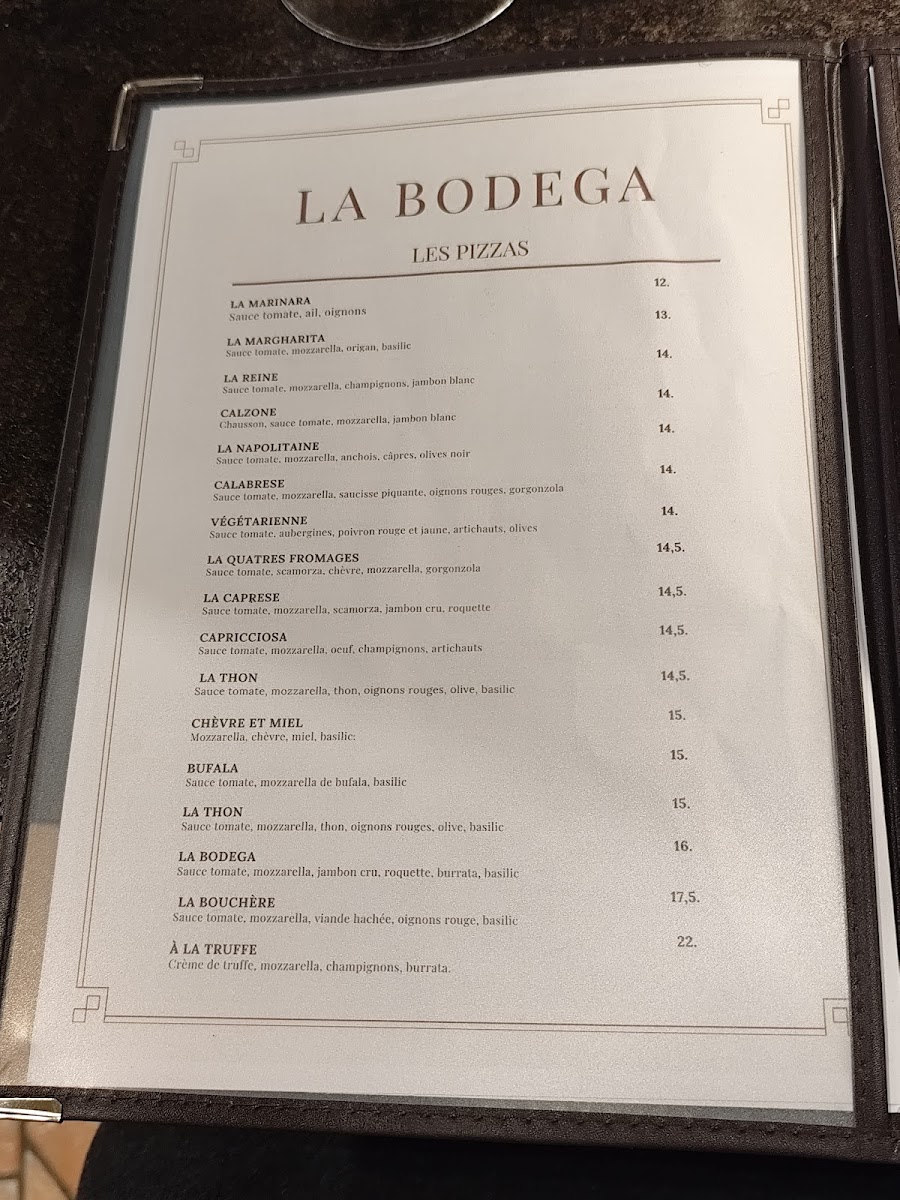 La Bodega, nestled in the charming town of Juan Des Pins, Antibes, France, is a delightful culinary gem that stands out for its inviting ambiance and exceptional cuisine. Boasting a proper pizza oven, their pizzas, particularly the Chèvre Miel, are a must-try, earning rave reviews for their authentic flavors. The diverse menu also includes scrumptious burgers, fresh salads, and delectable moules, all served with generous portions. Guests appreciate the attentive service and the restaurant's serene yet lively atmosphere along a vibrant pedestrian street. Whether for a large group or an intimate dinner, La Bodega promises a memorable dining experience.